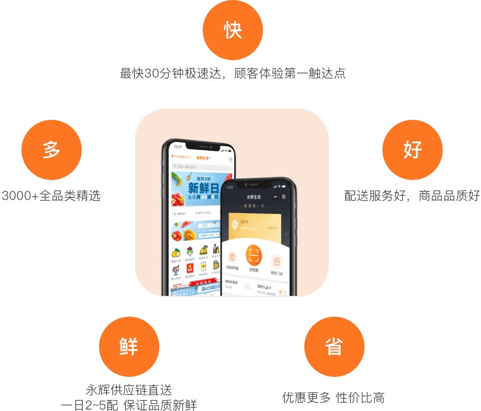 是永輝云創(chuàng)依托全球直采供應(yīng)鏈、智慧零售科技實(shí)力孵化的創(chuàng)新業(yè)態(tài)。通過(guò)貼近用戶的衛(wèi)星倉(cāng)、永輝線上超市小程序/APP線上服務(wù)平臺(tái)、專業(yè)貼心的服務(wù)團(tuán)隊(duì),為周邊3公里用戶提供品質(zhì)生鮮、全球好貨30分鐘配送到家體驗(yàn),滿足用戶新鮮、便捷的生活購(gòu)物需求。